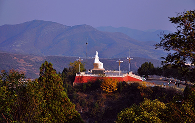 西施望月台:在牛尾山主峰东边的次峰上,有一尊高10米,座北面南仰望天空的西施雕像,雕像为汉白玉结构。