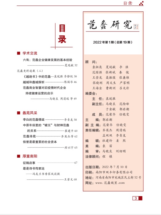 地址:南阳市宛城区新华街道民主街东段范蠡文化研究院秘书处   电话:18637763905 邮箱:fanliyanjiuyuan@163.com