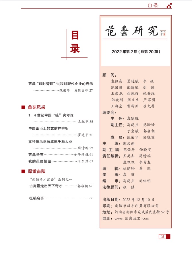 地址:南阳市宛城区新华街道民主街东段范蠡文化研究院秘书处   电话:18637763905 邮箱:fanliyanjiuyuan@163.com